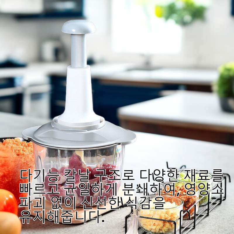 ● 다기능 칼날 구조로 다양한 재료를 빠르고 균일하게 분쇄하여, 영양소 파괴 없이 신선한 식감을 유지해줍니다.